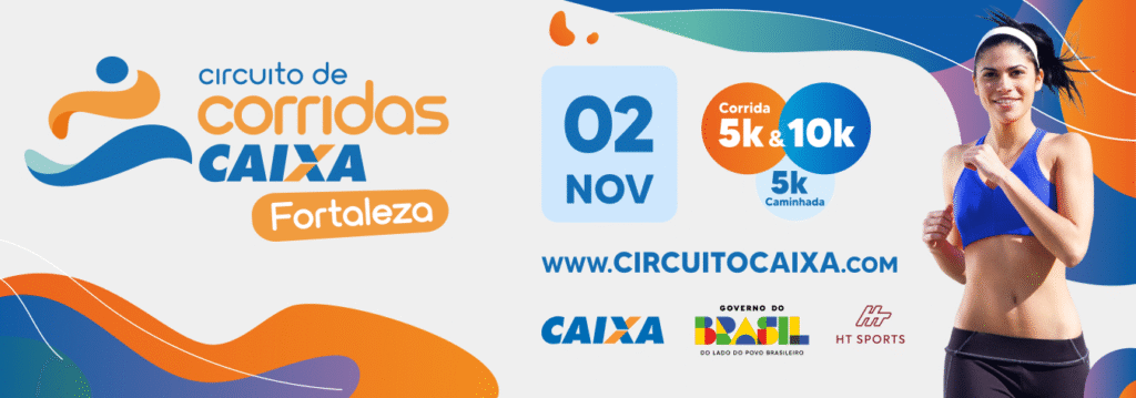 Participe do Circuito de Corridas Caixa em Fortaleza 2025! Provas de 5k, 10k e caminhada no Aterro da Praia de Iracema. Garanta sua inscrição!