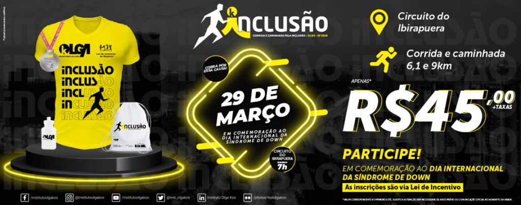 Participe da Corrida e Caminhada pela Inclusão em São Paulo no dia 29/03/2026. Um evento que promove a inclusão social através do esporte.