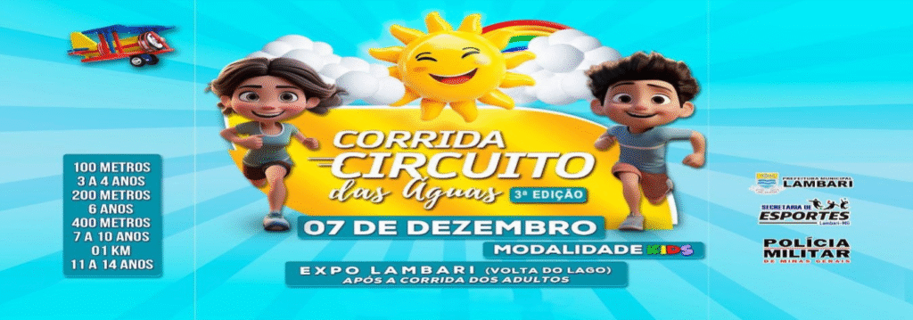 Participe da Corrida Circuito das Aguas em Lambari MG, 07/12/2025. Distâncias de 5k e 10k, premiações especiais e kit do atleta incluído.